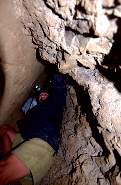 Certain junctions within the tunnels lead to dead ends where the only way onwards is climbing up or shuffling down 90 degrees from your current position. Though the change of direction may seem steep, the distance covered in this vertical movement is relatively short. The lack of artificial handholds, ropes or ladders, however, means having to resort to chimney climbing—the use of one’s body weight to gain leverage, leaning on one’s palms or soles, to ascend or descend in a controlled manner.