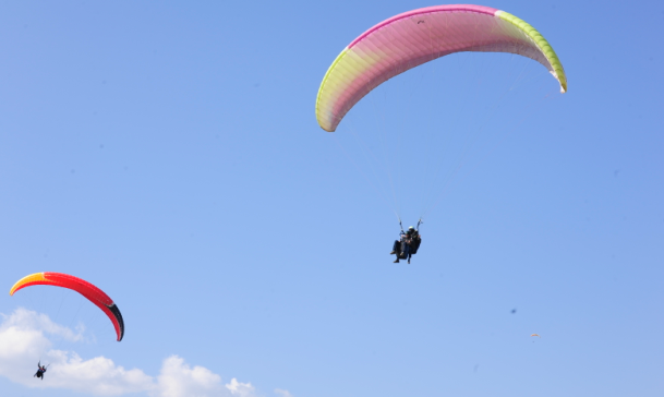 On reaching the place, we felt a real sense of relief. This was really going to happen! With the weather still a little gloomy, we had to wait for the sky to get clearer. With a Real juice in our hand from a small tea shop, we killed time talking, taking pictures, and chatting with the pilots. Fortunate for us that the weather started to favor us, and the pilots geared up with the gliders and started to issue instructions.