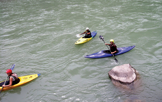 Often seen accompanying commercial whitewater rafting trips, kayakers play an