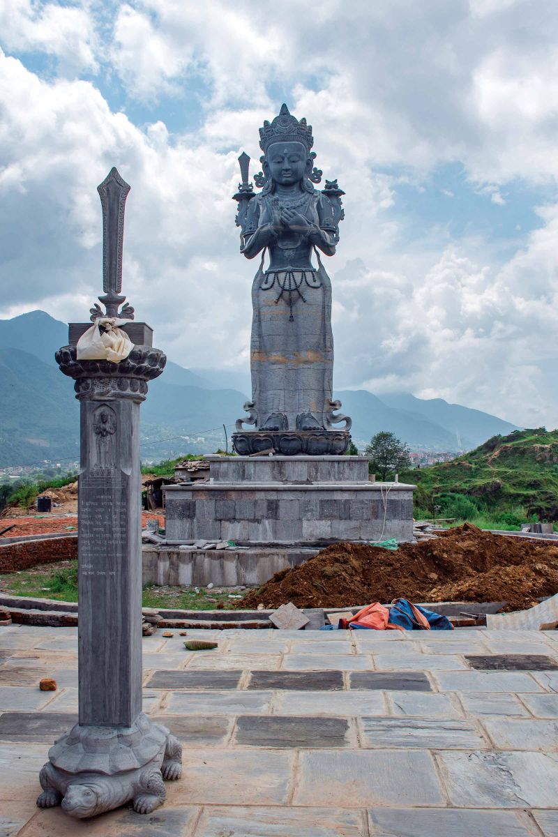 Standing tall at 33 feet and made from stone, the statue’s ability to withstand jolts from an earthquake was a major concern for the team. If they had opted for the more common way of putting the pieces together bonded by chemicals it would’ve been quicker, but since the statue is a huge investment, they firmly believed it was better to take things slower with a reliable plan. Sujendra Shrestha says, “To make the statue earthquake proof, each stone is held together by two thick rods on each side of the pieces in the entire figure, which will make the sculpture stand strong and tall.”