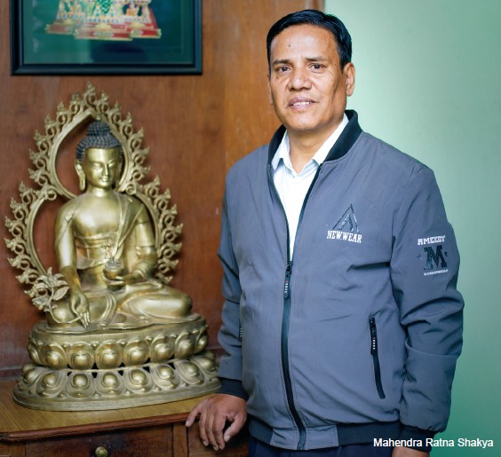 Mr. Santa Kumar Shakya, recipient of the ‘Best Artist” award from the Federation of Handicraft Associations (FHAN) in 2072 B.S., is one such master. Famous for his magnificent statues of Sahasra-bhuja Sahasra-netra (Thousand-Armed, Thousand-Eyed Avalokitesvara), he is today one of Nepal’s leading metal sculptors. His works can be seen in some prominent places like Seto Gumba, Sigal, Kapan Monastery, Swaymbhu, and so on. One of his biggest creations, an 18-ft-tall statue, is located in the Ani nunnery some way below Kapan Monastery. Of course, you can also visit his workshop on the ground floor of his home, which is situated around the large courtyard behind Rudravarna Mahavihar, one of Lalitpur’s most beautiful heritages, an outstanding example of Newari art and architecture. Looking at the serene surrounding, and then at the beautiful pieces of art in the workshop, one cannot but say that they complement each other perfectly.