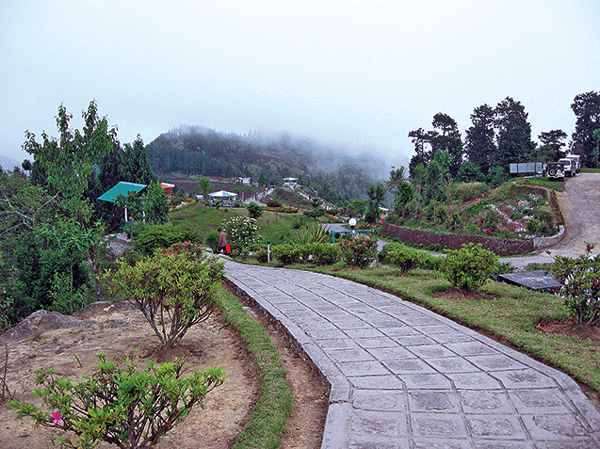 Regretfully, I take leave and continue my journey alone. At last I reach the plateau. I notice some deep water reservoirs, and beyond that, an apparently well-maintained park and picnic spot. There are quite a few visitors. Right now, however, my priority is something else. I sit down at one of the roadside eateries near the gate and wolf down a couple of plates of excellent momos. Only those who have undertaken an odyssey like mine (walking uphill for hours) can understand when I say that I could literally feel the nourishment flooding through my veins. Thus fortified, I take a round of the park, which has a government tourist lodge at a vantage point. From here, I can see Kalimpong town and the Teesta River far below, as well as the surrounding villages of the Relli valley. It is all a splendid sight.