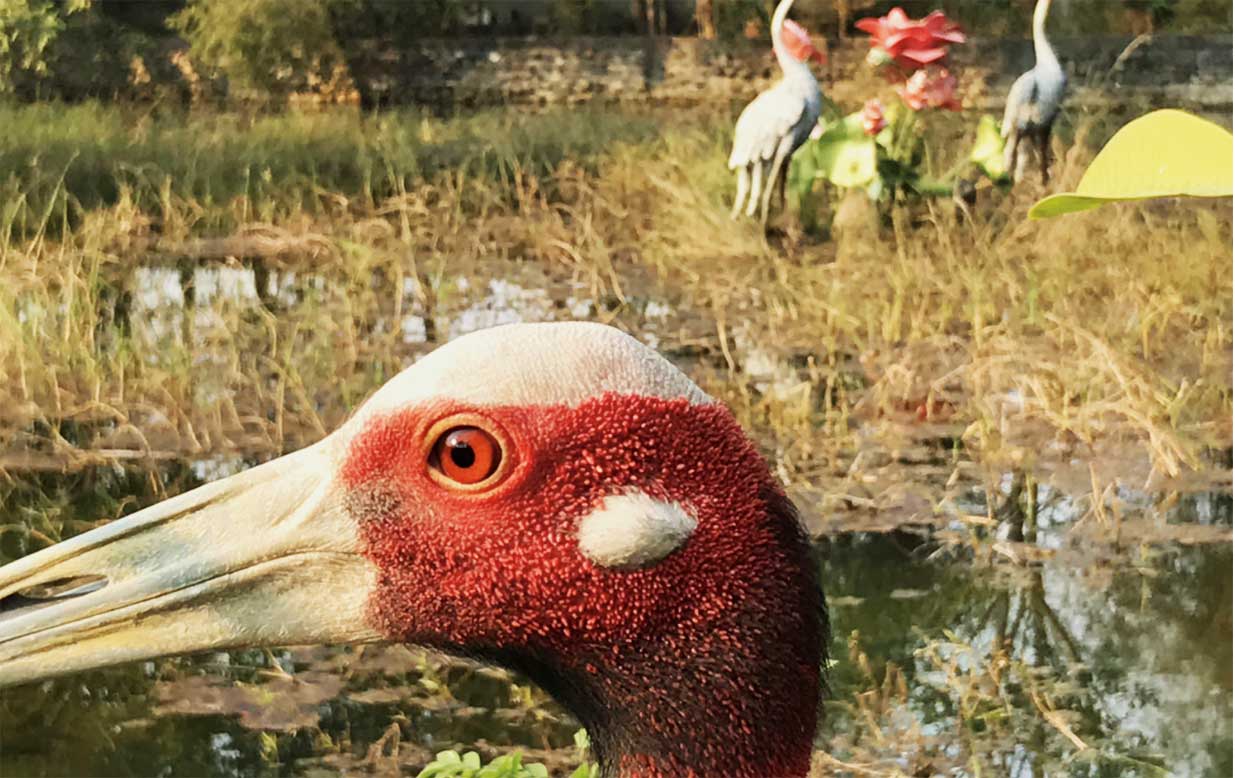 Lumbini has a high amount of biodiversity and is a designated Important Bird Area (IBA) of Nepal. One species whose habitat has been particularly strained by development is the Sarus crane, the tallest flying bird in the world.