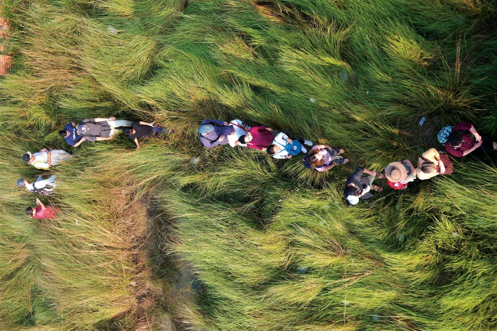 On one early morning, I met with Dharmendra Pal, the program coordinator for the Lumbini Crane Sanctuary. Located in the area surrounding the Peace Pagoda (one of the only two in Nepal; the other is in Pokhara), the 254 acres are part of a 50-year-lease between the International Crane Foundation and Lumbini Development Trust (LDT). Dharmendra led me through the towering grass toward a viewing platform, which we climbed a steep staircase to get onto. From there, we could see across the natural wetlands, where additional ponds have been built to make the ideal habitat for the cranes to mate, hatch, and raise chicks.