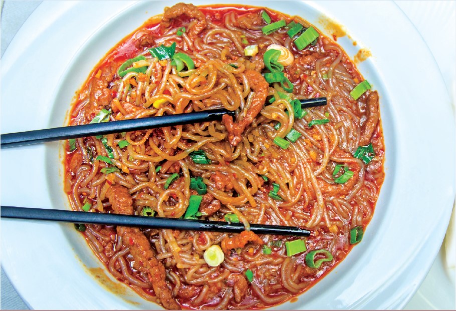 What is it? Laphing is a cold noodle dish seasoned with spices.
