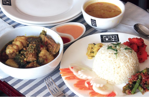 I happened to visit Momo Karma on the day of Maghe Sangrati and by coincidence Rajiv and I arrived at the doorstep of his restaurant at the same time. We decided on a late lunch so that they’d have enough time to prepare the meal. So I arrived back at the eatery at 2:30pm. When the food arrived, I knew I was in for a treat as the colors looked good and the pork seemed to have been cooked just right. Relishing my favorite dish, I avoided the dahl as far as possible because rice with pork and rayoko saag has that unbelievable, unique taste which you don’t want to contaminate with anything. The food had me wishing I had a bigger appetite but there is only so much I can consume. It was exactly the way I remembered it and anyone who tastes it for the first time will never forget the experience. There is nothing in this world that tastes quite like Pork and Rayoko Saag. They are meant for each other and if you haven’t tried it, you surely don’t know what you’re missing. They both have unique tastes and when you put them together, it’s doubly unique! The best part is, as Rajiv puts it, “It took only half an hour to cook!”
