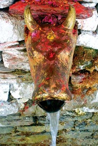 Muktinath is predominantly a Hindu pilgrimage with devotees coming from around the world to bathe in the cold mountain water from its 108 water spouts before giving their respects to Lord Vishnu. However a number of red-robed Buddhist monks and nuns can be seen mixed amongst the Hindu devotees, their numerous sadhus and always some trekkers and tourists.