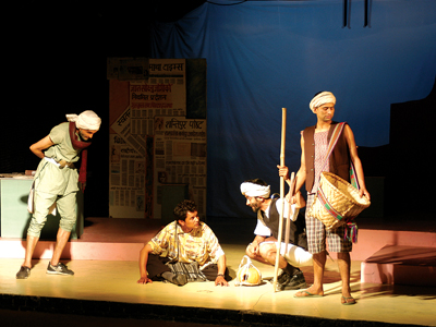 Aarohan has also worked with diverse groups in Kathmandu including street sweepers, factory workers, students, child labourers, journalists and nurses. They have also trained and worked with local people’s theatre groups throughout the country as an attempt at peaceful conflict resolution through theatre in a country racked by a bloody civil war. This work has been supported by UNDP’s Peace Fund and MS-Nepal. They have also helped create the Street Theatre movement in Kathmandu on issues of social justice, democracy and pluralism. Outside the valley, Aarohan has made a point to train local activists to do plays, both to involve new people in the theatre movement and to create a drama that is relevant to local circumstances.
