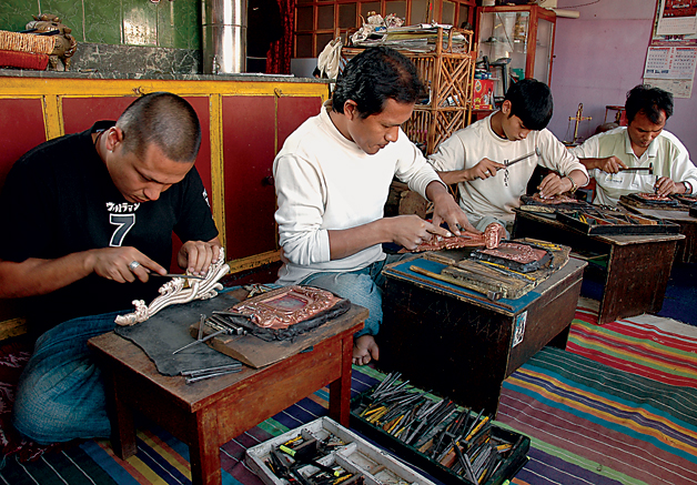 Making superbly crafted statues of gold, the goldsmiths of Patan display remarkable skills and dedication to their chosen profession. Repoussé, an ancient technique is alive and well in this city of artisans.