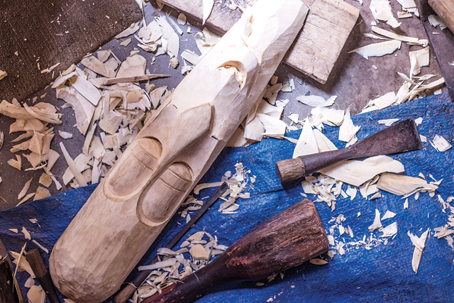 What I really enjoyed was sitting on the floor of Dhanuki’s shop, covered in wood shavings, working alongside the craftsman. The experience didn’t feel commercial, and it was amazing learning one-on-one with a master. Being surrounded by masks and working like they do (on the floor with my feet supporting the block of wood), was the most authentic way of learning carving.