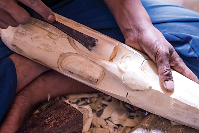 After Dhanuki and I finished a specific section on the wood, he would demonstrate the next step and then urge me to try. He guided me closely while my amateur hands struggled to angle the chisel. Slowly, as I watched in awe and wonder, the block of wood metamorphosed into a beautifully carved face. I couldn’t believe I had a hand to play in that work of art.