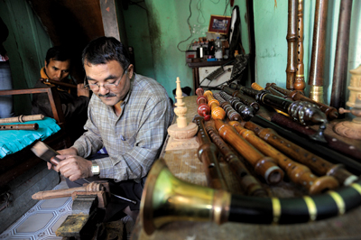 Bajra Bahadur has been making flutes(muralis) for well nigh 30 years now