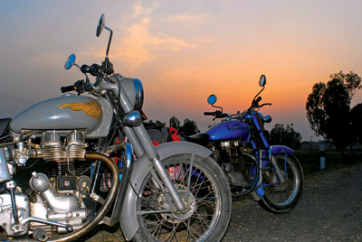 Driving long straight highways on a Bullet is a dream. Heavy as they feel, it’s like traveling on an armchair. Yet these roads require constant attention; to the bikes’ running condition and awareness of fellow travelers: overloaded snail-paced Tata trucks, hurtling night buses, carts laden with bamboo pulled by gigantic oxen and motorcycles with families of riders. Then there are goats, cows and buffalos moving for grazing… the list of oddities was endless.