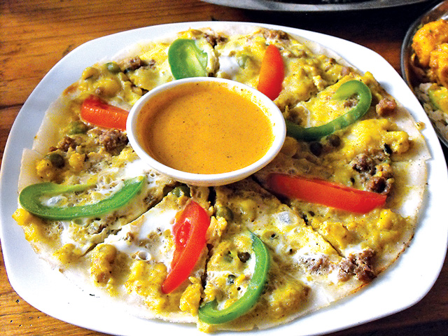 Sometimes called Newari pizza, this delicious local specialty has found its place in the hearts of food lovers in Kathmandu. Vegetarians and omnivores alike can enjoy this one, as you can order it with your choice of toppings—meat, veggies, and often an egg. Slices are usually dipped in a tangy tomato achaar for a satisfying tasty treat.