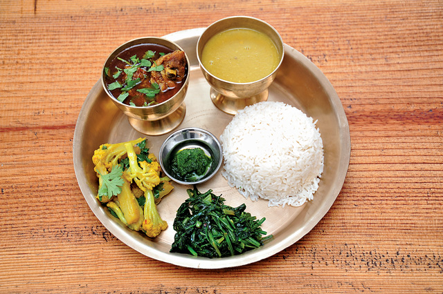 Daal bhaat tarkari isn’t just the traditional meal of Nepal, but variations of it are widely eaten throughout South Asia. The taste varies from region to region, depending on the tarkari and other curries that are included in the meal. For a bit of sour zing or spicy flavor, one can also add achaar, and the many options here make all the difference. Hearty and filling, it is best enjoyed by eating with your hand, rather than using cutlery.