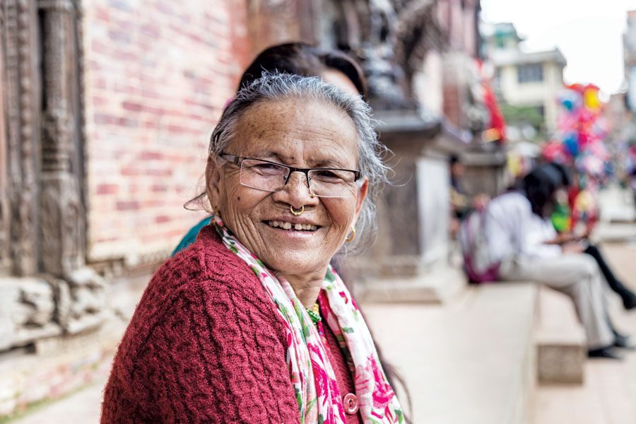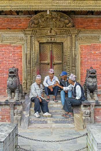 Gorkha Mani Kapali, 78, Asha Kaji Byanjankar, 62, Mehboob Khan Nepali, 63, and Asta Bir Maharjan, 55, are friends for life. They sit together on the stairs of the Bhimsen Mandir, watching passerby. Enjoying the free television of life at Patan.