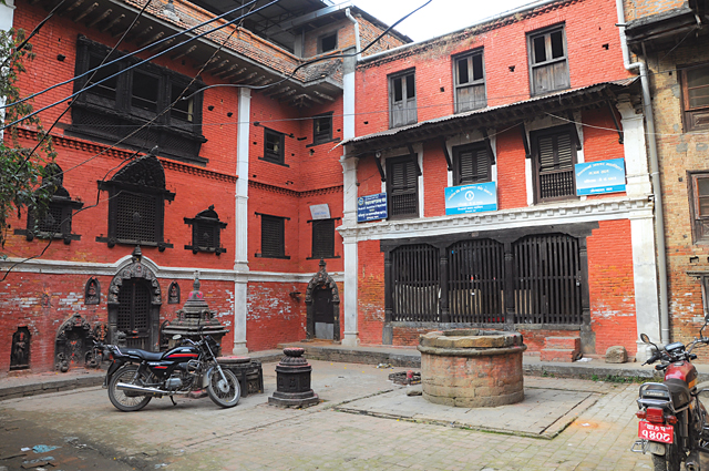 It may be tiny, but it would be hard to beat the location. Rikson doesn’t like those cement towers and is aware that the municipality now discourages their construction. He’d like to improve his home in the traditional style, with elegant carved wooden windows. But those cost a lot of money, and in spite of Patan’s sky-high land values, cash can be hard to come by. While guthi often preserve buildings and commission new windows in the traditional style, many private homeowners, strapped for cash or just preferring the more comfortable life they envision in a newer house,end up tearing down their old homes to build cement ones. That is probably what will happen to the abandoned home across the square when its squabbling family comes to an agreement over who controls it. These courtyards and their homes may be national treasures, but they’re caught in a tug-of-war between competing futures, and many of them are unoccupied.