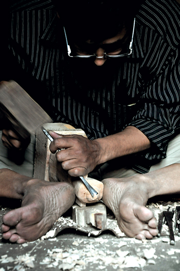The artisans who pay respect to Biswokarma have built an extraordinary universe of their own that has endured for centuries. But in each square, there are empty homes, and the people who live here now say that, while the traditional homes are cool in summer and warm in winter, the young people don’t like the low ceilings and prefer, if they can, to build new homes of marble and concrete in other areas, where they live behind private gates. Woodworkers struggle with the high cost of wood, which translates into a loss of customers; their children study computers and visit manpower agencies.