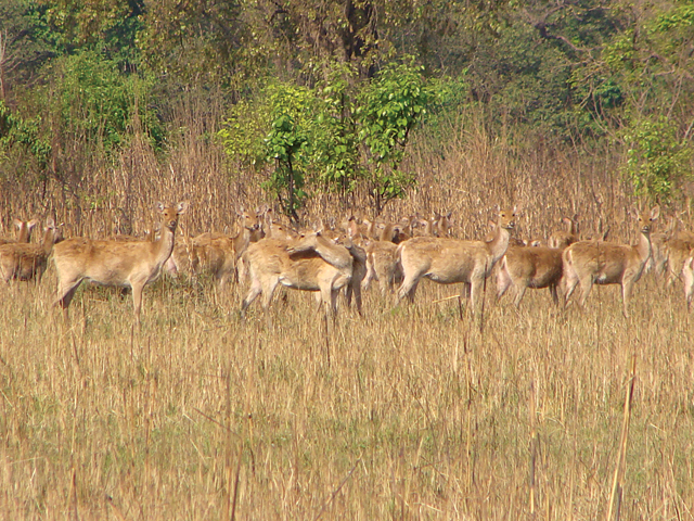 Suklaphanta is almost synonymous with swamp deer. The reserve has the largest herd of swamp deer in the world. Some herds have over 700 individual deer, a remarkable number but not anywhere near the 1000-strong herds that used to graze in these grasslands a few decades ago. The last annual count found that the reserve had a population of 2170 swamp deer. Records also show that there has been a steady increase in their population in the last five years.