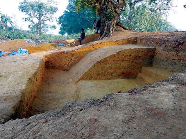 Archaeological excavation, in my experience is a very exciting and elaborate task which needs to be performed with great responsibility. My excitement of what it would all be about started right from the time when I started laying out a trench, digging it and the excitement built up when bricks structures emerged some two feet below the top soil. It is all a very slow process, the digging is to be done very carefully, so no remains below the soil gets damaged. Shovels, hand-pic, trowels etc are used, and every time a brick structure is exposed, the sand, mud, and roots have to be brushed away to expose as much of the structure as possible, to photograph and analyze. As I dug on, and more structures were seen, my curiosity peaked as to what these structures are and how much bigger they could be. The excitement of finding some valuable treasures is always there, and many visitors often ask “did you find any gold and precious stones?” little do they understand that even a piece of pottery to an archaeologist is equivalent to gold and precious stones! However findings of various terracotta human and animal figurines, broken parts of terracotta figures, and kilos and kilos of fragmented pottery were excavated which are sent for cleaning and sorting and analyzing to place their chronology.