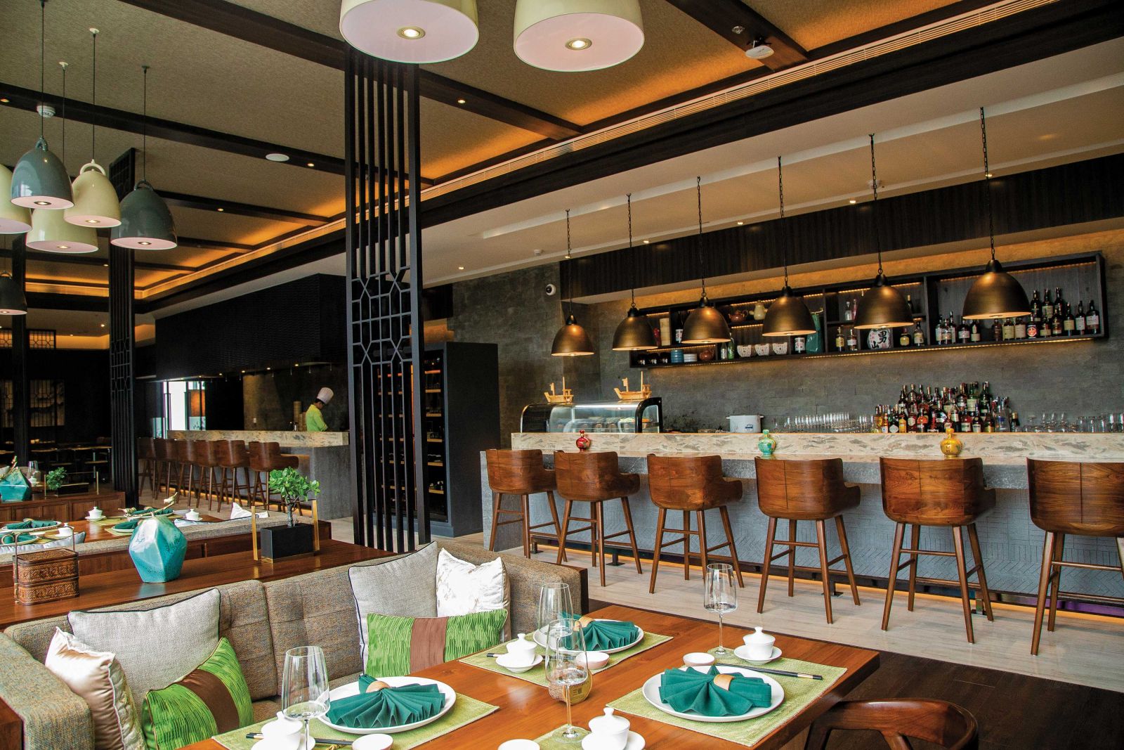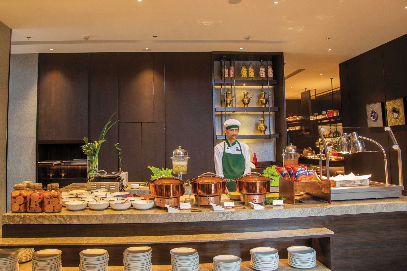 The Kava all-day dining restaurant offers a buffet station and a la carte menu focusing on Indian and continental food. There is a semi-outside dining area in which I have seen family gatherings and children’s birthday parties being held. Nearby is the Kava Bar, a small area providing coffee, cocktails and spirits.