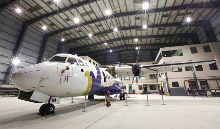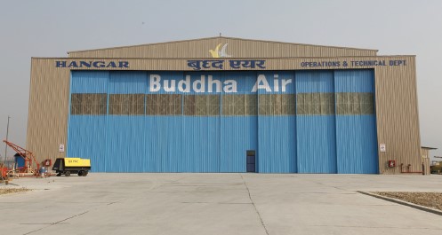 Working at the 37,000 square feet hangar space are the technicians and engineers of Buddha Air. Located across the runway from the Tribhuvan International Airport, the closed door hangar facility is the first of its kind in Nepal. The 280-ton steel structure was built at a cost of US$ 2.5 million and its inauguration was on 18 April 2012. Buddha Air is also the first airline in Nepal to obtain an operation certificate to provide MRO services from the Civil Aviation Authority of Nepal (CAAN). Besides maintaining its own aircrafts in an airworthy condition, Buddha Air also provides MRO services to other airlines like NOVOAIR and Druk Air.