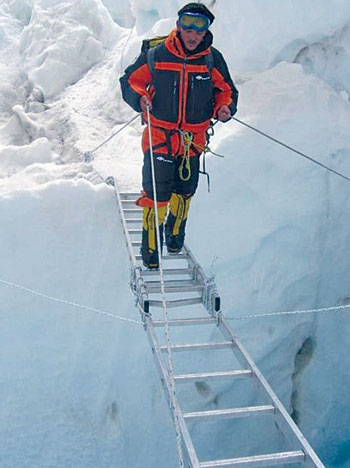 Returning from the Rangashala, he was in a small tea shop in Patan drinking tea, when he saw a televised interview of Aapa Sherpa. He remembers, “I thought to myself, this person has to be the bravest person alive. He had climbed Mt. Everest 19 times, and the idea of Mt. Everest itself was terrifying; the snow, the cold, avalanches, and the difficult path. During the interview, he said that if people have the will, they can succeed in anything they aim for, and that inspired me to climb Mt. Everest.”