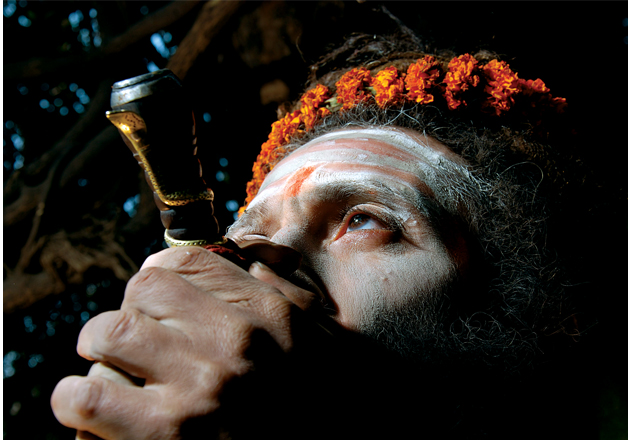 With chillum in his hands and forehead smeared with tikas, a Babaji paying homage to the almighty Lord Shiva