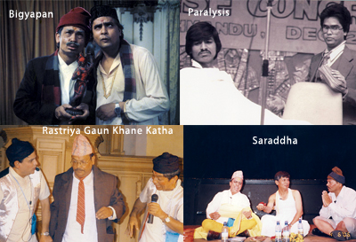 Over 32 years of partnership, Madan Krishna and Haribansha have made people laugh while actually teaching them: about tuberculosis in Chiranjivi, in which a greedy son in law waits for a tubercular elder to die. But, timely cure saves the elder, keeping him alive longer than the greedy son in law. Raat, in which a jovial guard on holiday from India turns out to have contracted HIV/AIDS after raping a Nepali sex-worker who sought shelter with him. Bhakunde Bhoot, in which a polythene bag full of garbage thrown in the streets keeps returning to the house until it is properly disposed of in a garbage container. Pandhra Gatey, in which a son insists upon getting married a day before his college girlfriend’s wedding, and in the process takes the family on a cross-country, pan-ethnic journey and a fight against the dowry system. Dashain, a meticulous record of the pitfalls of greed and ostentation during the festival as celebrated among the urban lower-middleclass. To their lasting credit, MaHa have even given Nepali culture the greatest moments of horror and suspense on screen: Haribansha’s rendition of a coming-of age ditty, “Ghaas katney khurkera, aayo joban hureka... Kaslai diun yo joban?” is still unsurpassed in its capacity to deliver terror into the hearts of a viewer. I used to waylay a friend in boarding school, hoarsely, slowly singing “Ghaas katney khurkera...” as he walked to the bathroom in the night. He’d scream and run to the cocoon of his quilt, to emerge only in the morning to punch me in the gut.