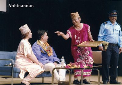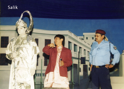 If pathos inflates humor into the dimension of the tragic, what does rage do? Righteous rage is another fuel to MaHa’s comedy. In 50/50, one of MaHa’s earliest works for the television, a customs officer who first seems upright and honest turns into a corrupt colluder to a gold smuggler who drops a brick – of gold – every time he is made to squat. MaHa’s political outlook has been consistently forthright, riddled with middleclass morality, a landscape where Right and Wrong clearly delineate themselves, and thus create the space righteous rage occupies in the civic consciousness. This outlook was most recognizable to the Nepali middleclass, which was just discovering television in the mid-eighties when MaHa made the leap from audio cassettes and stage performances to television specials. The middleclass recognized its rage reflected in 50/50’s satire. But, the notion that the clean-collared bureaucracy was a dirty bunch of the corrupt and the greedy was not as easily digestible to the upper-crust of the society in the Panchayat era. Before airing 50/50, the censor at Nepal Television refused to pass the program unless an alternative ending was provided, where, miraculously, the entire story turns out to be a dream.