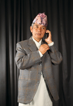 The public instead sees two faces to one civic conscience, two bodies to one artistic idea. The civic conscience behind the art is as serious and thoroughly considered as the comedy acts and personae are an outlandish bouquet of buffoonery. Look around town these days and you’ll see them on advertisements of all descriptions, promoting anything from a direct-to-home satellite television package to international money transfers. Rarely do they appear as the public figures Madan Krishna and Haribansha; more frequently, the figures on the hoarding boards depict their various avatars from their long career. After the 2008 CA elections, a survey by the Election Commission showed that a lot of voters had learned about the difference between proportional and direct elections from watching their shows Ama and Madan Bahadur – Hari Bahadur. False moustache and a mole the size of a two-rupee coin, for instance, for Madan Bahadur and Hari Bahadur’s advertisement for Western Union: the latter stealing cash from the former’s pocket, both grinning at the camera. Or, a head of silver hair for the octogenarian matriarch, Ama, who intuitively understands the importance of voting, even at her ripe old age. The Western Union ad tells the people that Western Union can be trusted. But the trust really comes from the esteem the Nepali people invest in the MaHa duo.