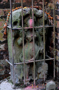 Numerous valuable works of stone were destroyed in the winter of 1349 when the marauding forces of Shamsud-din-Ilyas, the Muslim ruler of Bengal, entered Kathmandu. For a week, the army of iconoclasts attacked the major Hindu and Buddhist temples, destroying the sculptures placed in these religious sites. Fortunately, due to the efforts of some people, a few masterpieces of stone survived the Muslim attacks. One such sculpture was the famous statue of Vishnu, which now lies supine in the Budanilkantha Temple. To save the statue from the Muslims, some people buried it. The statue was saved but with the passage of time people forgot about it and it was lost. Then, one day a farmer struck something hard while plowing his field, which later turned out to be the toe of the Vishnu idol buried years ago.