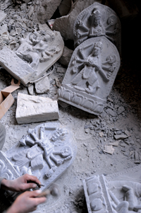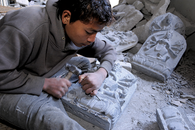 Modern stone sculpting is a difficult art form in itself but the traditional form requires a degree of erudition that comes only through years of study and practice. Stone sculpting, Shakya says, is not just cutting out the form of a god from stone. Since most stone sculptures in Nepal are those of gods, before someone takes a chisel and hammer in his hands, he must acquaint himself with religious tomes that describe the physical appearance and disposition of the gods in meticulous detail. There are guidelines on how to sculpt different idols and every sculptor must know and follow them. “We have to peruse religious texts to glean facts about different gods,” says Shakya.