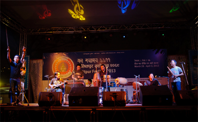 Kutumba — which means kinship in Nepali, is Nepal’s most renowned folk band. Based in Kathmandu, “Kutumba is all about bringing together traditional folk tunes and instruments from around Nepal with new and improvised sounds and ideas”. With the incredible plethora of folk music spread across the Tarai and hidden amongst the mountains of Nepal this calls for a lot of sharing, creativity and inspiration. The life and soul of Kutumba is really found in its collaborations with other folk musicians. Kutumba is about celebrating links and revealing the unity among the very different cultural traditions in Nepal. Spreading and sharing musical heritage is at the focus of their work. “Folk music is what we are,” explains Pavit, the band’s percussionist.
