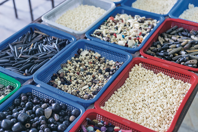 Laxmi Wood Craft produces different buttons from several raw materials, such as buttons made from dried twigs and branches, and buttons made of peach, stone, bamboo, coconut shell, and glass beads. There are about 8,000 designs of buttons, with the company producing 10 to 15 new designs every day. Different crafts made from bone include small statues and sculptures. The hand-woven clothes made from cotton yarn, raw silk yarn, and pashmina complete the product line. Not many buttons pass the test of time. The buttons made of wood, paper, and branches disappear in time, but the buttons made of bones live to tell the tale.