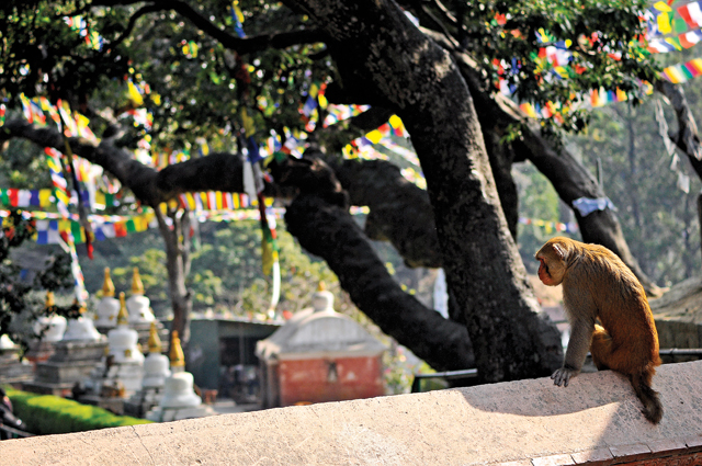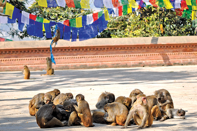 Walking up the Swayambhu hill, located in the north-east part of the Valley, on a chilly morning, Dr Chalise asks a question: “Why do you think the monkeys here have a red bottom?”