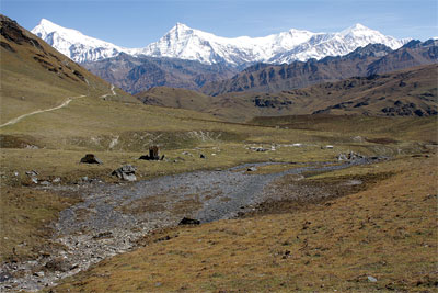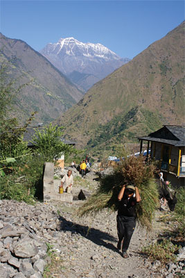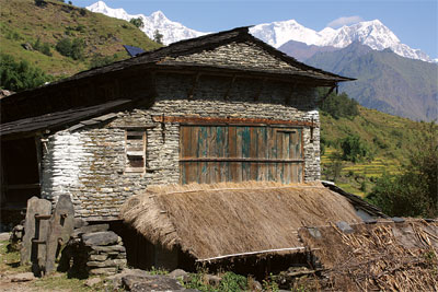 The trail from Beni soon passes the soothing hot springs at Tatopani. Many people believe that the spring waters are curative and domestic tourists come from afar to spend days here. Ascend through timeless, pastoral villages on the way to the remote highland meadows of Jaljala (11, 200 ft, 3414 m). The expansive views here of the Dhaulagiri Massif are jaw-dropping. Herders occupy this high, broad pastureland during the rainy months and a seasonal tea shop might be in operation, too.