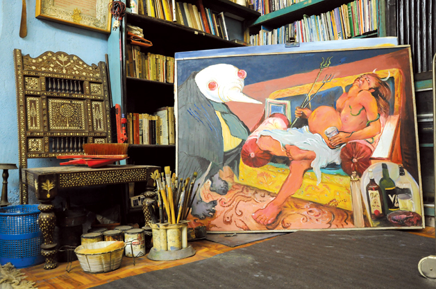 “He is one of those who exiled him, what do you think?” This painting was done around the time of Gyanendra’s ousting from Narayanhiti Palace. “You will see a lot of ‘dinosaur’ like figures in my paintings. They are dinosaurs assaulted by my ego. "