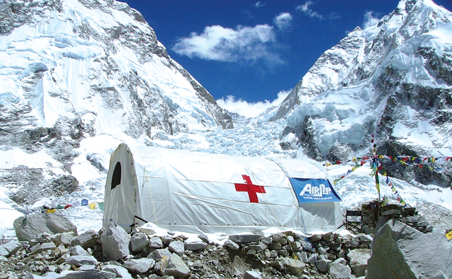 Starting from the spring of 2003, the 50th anniversary of the first ascent of Everest, a group of three doctors and a Nepali staff have been running health camps from April 1 to the end of May (end of the spring climbing season) at the base camp every year. The facility has provided medical assistance to over 1,800 patients and has organized over 150 helicopter evacuations.