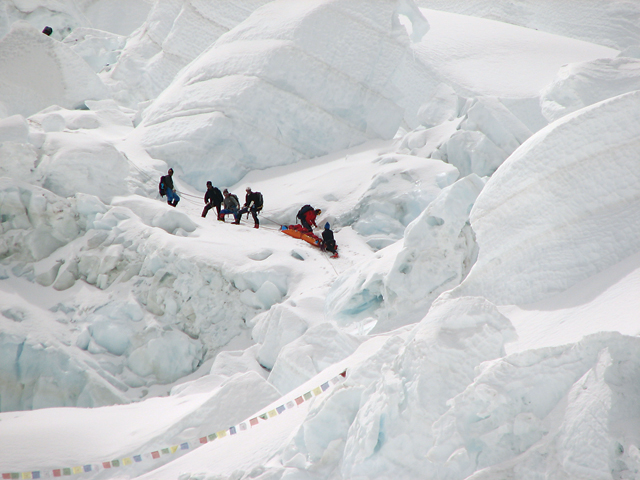 At mid-day the search and rescue efforts were halted, as the risks of a second avalanche arose. The four survivors and the dead bodies that could be recovered were brought down to the health post at base camp. After immediate medical attention, the casualties were flown to Pheriche on a helicopter. There, the efforts of the doctors and the assisting staffs helped one of the survivors recover, while the remaining three had to be taken to Lukla for further medical attention.