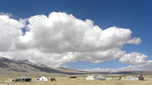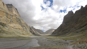 After experiencing the Tibetan full moon and a night of severe wind buffeting, we awoke to complete and utter stillness. The skies had cleared to reveal the expansive valley and our route ahead. We were now on the final leg of the pilgrimage, circumambulating the eastern face. Here the valley mouth was open, displaying a riot of grass and wild flowers. The etched hillsides appeared vibrant and fresh. Once again the gentle birdsongs had returned to fill the air.