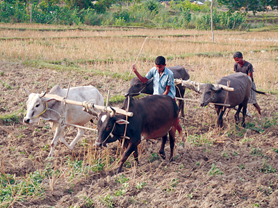 Tharu farmers in Bardia tilling their land