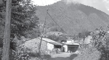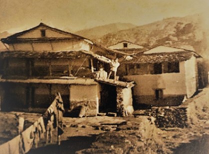 When the strangers were directed to the Lambardar’s house, they found “a fine affair of three stories tiled with stone slabs, dominated the half-dozen straw-thatched dwellings near it.” ‘Lambardar’ is an archaic Indian colonial term for what the Nepalis called, in those days, their “Mukhiya” (headman). (The hereditary Mukhiya system of village government functioned in the Nepal hills from the mid-1800s during Rana times until the 1970s when it was replaced by an electoral system.)