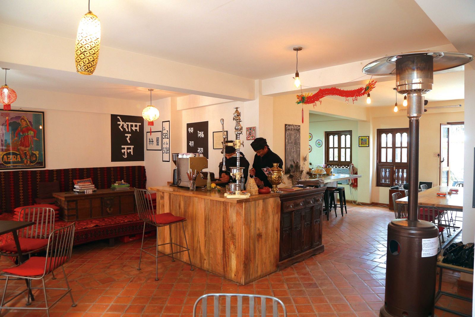 It’s just a minute or two from Patan Durbar Square, down a narrow alley, in a lovingly restored and charmingly decorated old building. Both the décor and the food draw inspiration from the combo of the Silk Road and Hippie Trail, iconic byways for travelers in two very different senses and eras.