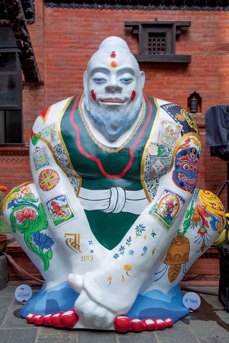 With a studio filled with sculptures and paintings of various styles covering almost every inch of the place, Bijaya Maharjan is one of the most revered artist sculptors currently at work here in Nepal. With the onset of Visit Nepal 2020, he wanted to do something to celebrate the year but had just quite not grasped what. “Nepal has always been known for Gautam Buddha, Mount Everest and various other cultural aspects. We needed something different and then it struck me, what about the yeti? It is one of the most prominent mythical beasts from the Himalayas,” explains Maharjan. One of the main reasons behind choosing the yeti was to highlight the said existence of this mythical beast. “Just like the US has Big Foot, the UK has the Loch Ness Monster, Nepal has the Yeti,” he says.
