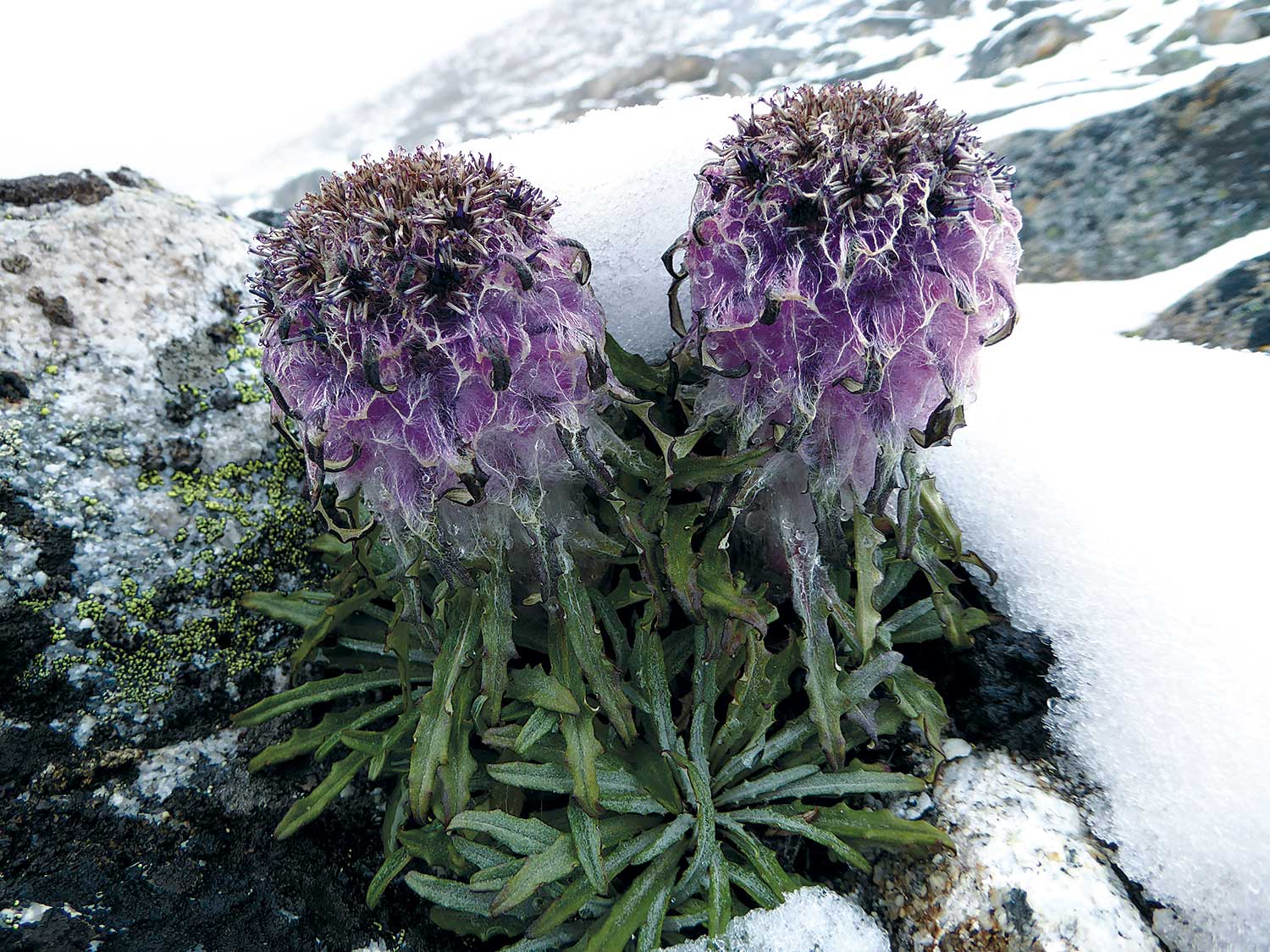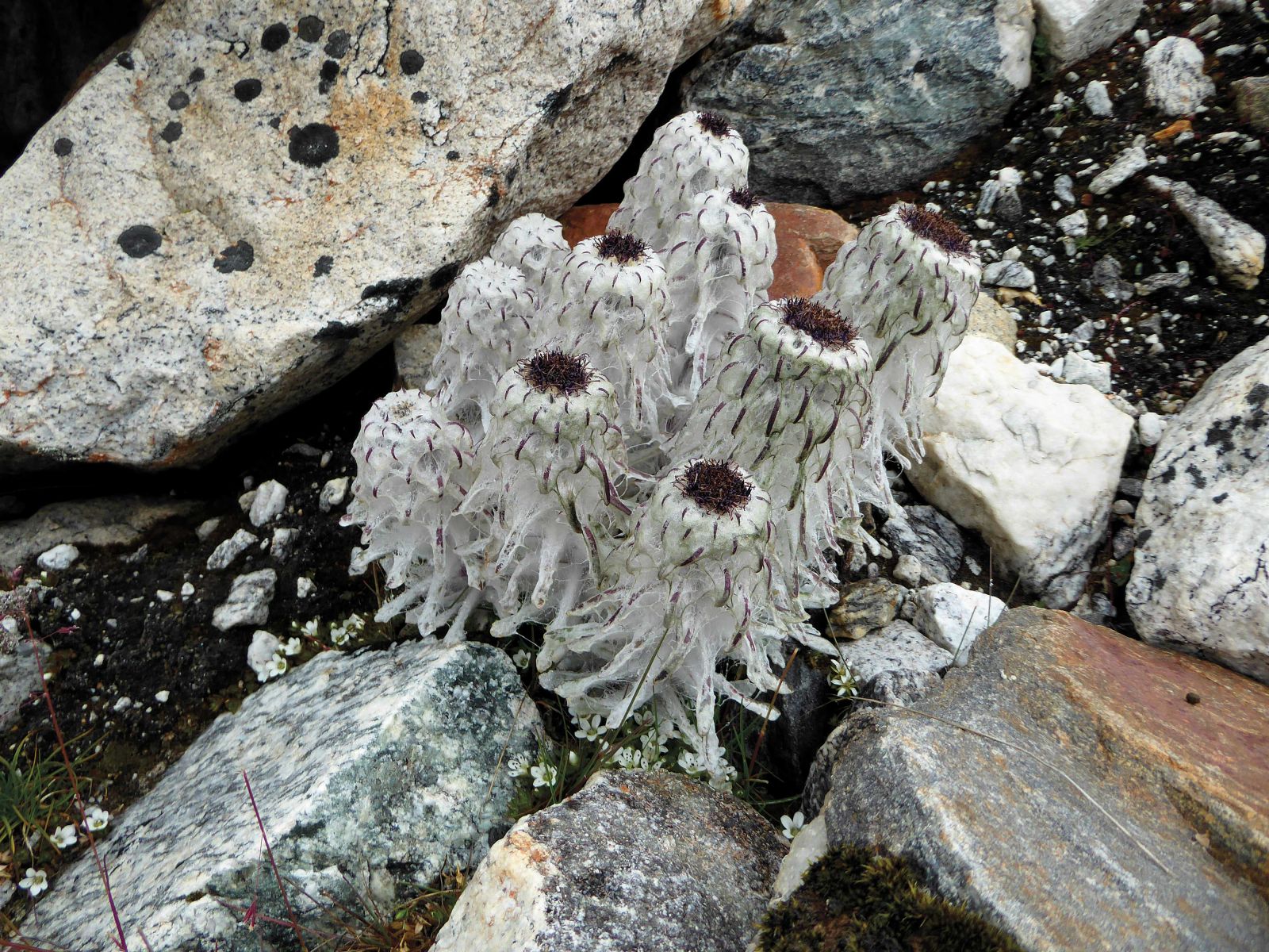 Dense cottony hairs provide insulation from extreme cold and wind in the harsh environment. Like many alpine plants, this species grows slowly over many years. It is threatened by over-harvesting for medicinal uses.