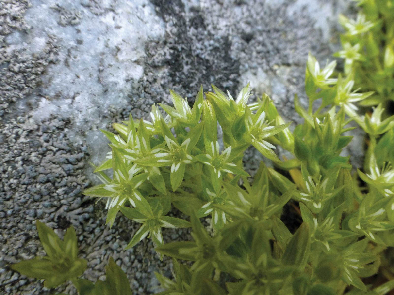 Tucked into rock crevices, this small fragrant wildflower shelters from wind and cold but risks exposure when the rocks shift.