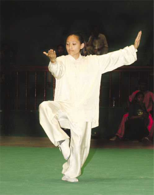 Explaining the training schedule, Lao Shi Pranil D. Karki says “A regular class lasts for two hours. It begins with 10 minutes of stretching followed by 15 minutes of jogging, a period of flexible kicking, 10-15 minutes of jumping, and finally, form exercises (Taolo) in which obviously, Tai Chi plays a major role.” Here, the master cannot stop himself from lamenting, “The competitions are so near at hand, yet there is no collaboration between members of the association and us, the trainers.” Pointing out the central guan (training hall), he says, “The facilities are the barest minimum.” Yet he is confident of bringing home at least 8- 10 medals for the country. This speaks volumes about the dedication of the Lao Shis as well as of their students.