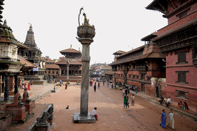 Patan is an artistic labyrinth: in nondescript alleys, in between modern concrete houses, behind simple looking low doorways are gems of architecture. Behind every mundane house is a relic of the city’s past. A visitor to Patan is best advised to tuck the map in the backpack. For every temple or monastery shown on the map there are a couple of inconspicuous but intriguing ones waiting to be discovered by anyone who will explore little passages between houses, duck and pass beneath low doorways, and let curiosity get the better of him or her.