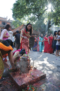 M ondays celebrate Lord Shiva, Tuesdays, the elephant headed god Ganesha, Thursdays are for Devis or female deities, especially Bangalamukhi in Patan, while Saturdays are segregated for the planet god Shani or Saturn. These deities represent various aspects of life, venerated on certain days of the week. Their devotees queue up in temples offering objects believed to appease them. Devotees of Lord Ganesha, for example proffer rounded sweets or laddus, those of Lord Shiva offer milk and curd while followers of Shani use black sesame seed, black clothes and metal objects, respectively. Fasting, however, is the one common ritual among all these devotees.